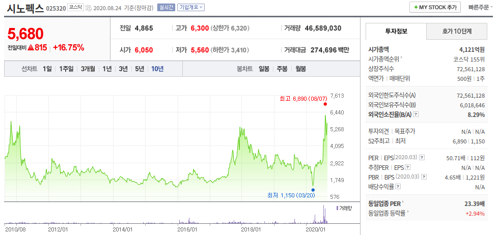 시노펙스(대장주)