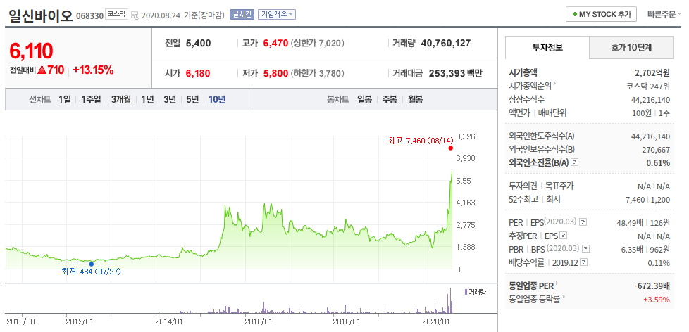 일신바이오(대장주)