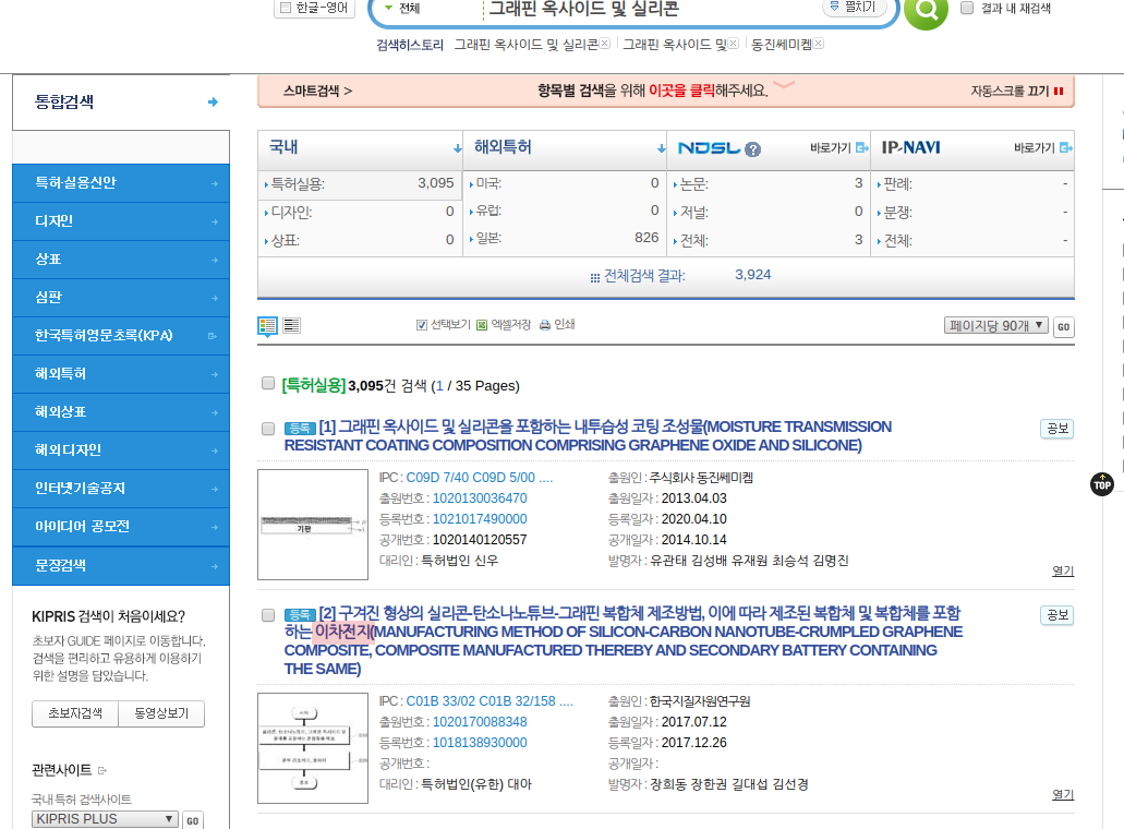 특허 검색 사이트인 키프리스에서 검색을 해보았고 확인을 해보았습니다. 2013년에 출원된 특허라 그런지 음극재나 2차 전지에 관한 언급은 없었습니다. 하지만 관련된 특허들로 2차 전지가 언급되는 것을 확인할 수 있었으며 그래핀에 실리콘을 섞는 내용을 확인할 수 있었습니다. 아래가 주요 내용들입니다.