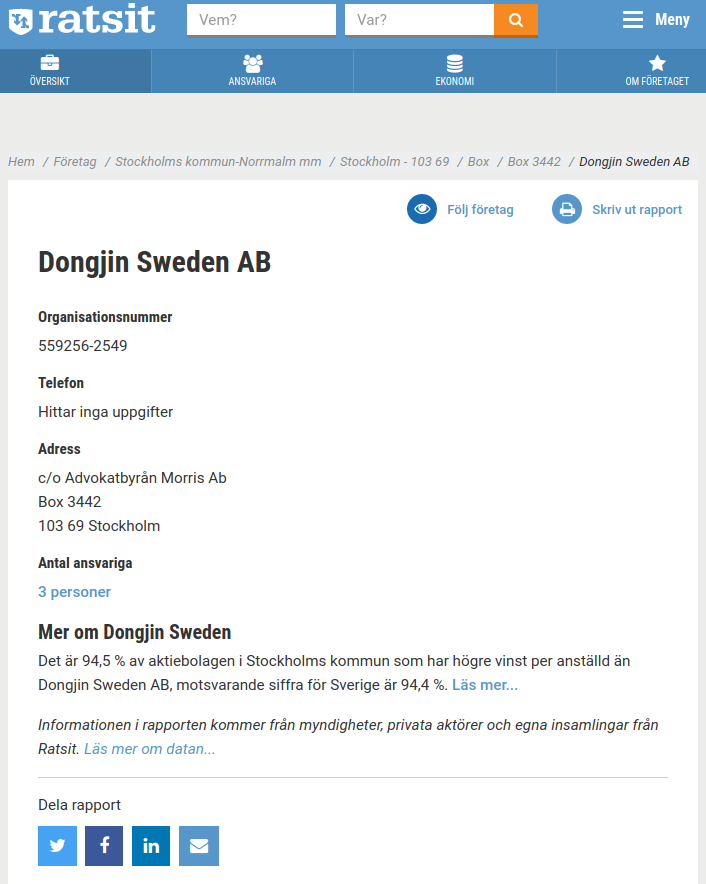 이틀 뒤인가 인포스탁 뉴스가 나왔고 사실인지 확인을 위해 공시를 찾아보았으나 아직 새로 나온 게 없었고 이후 스웨덴에 동진 스웨덴 AB가 있는지 확인해보았습니다. 몇몇 사이트에 동진 스웨덴 AB(Dongjin Sweden AB)가 등록되어있는 건 확인했습니다. 그러나 계약건이 사실인지는 알 수가 없어 사실 확인을 위해 동진쎄미켐 주담(주식담당자)에게 전화해보았습니다. 2차 전지 소재 관련해서 아는 것이 없었기에 저는 노스볼트와의 계약건이 사실인지만 확인했습니다.