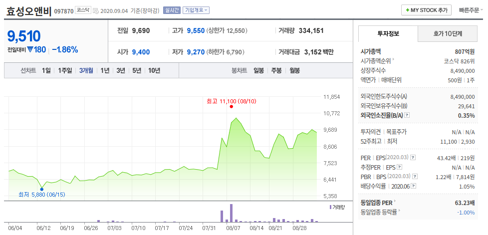 | 효성오앤비 | 농업, 비료, 농약 | 농협계통 유기질 비료 납품 선두업체. |