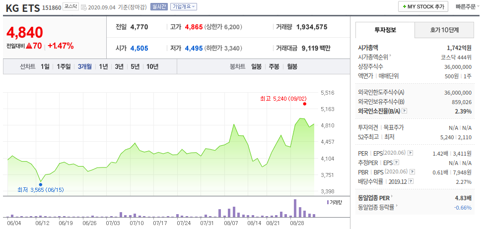 | KG ETS | 폐기물처리 사업을 영위하며 폐기물 소각열을 활용한 발전 및 에너지화 사업 예정. | |