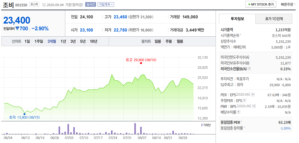 | 조비 | 비료 제조 및 판매, 280여개 품목의 복합비료 생산. 최대주주 경농. | |