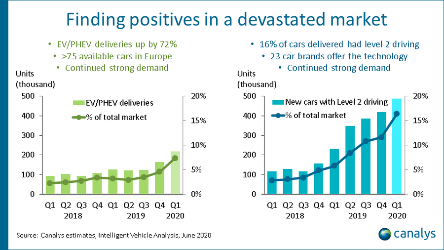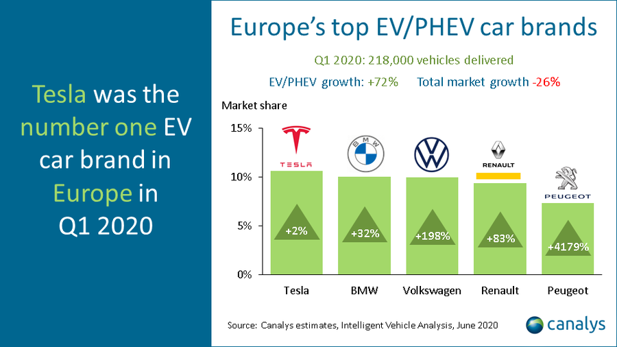 지난 6월 완성차 판매 시장에서 기준 전기차 침투율은 3.56%를 기록하며 역대 최고치를 달성했습니다. 총 23만 대가 팔렸는데 테슬라가 압도적인 점유율을 자랑하고 있고 폭스바겐이 2위, BMW가 3위로 뒤를 잇고 있습니다. 상반기 전체 세계 전기차(PHEV, EV 등) 판매 순위에서는 폭스바겐의 e-골프가 21,165대 팔리며 4위, 파사트 PHEV가 15,670대 팔리며 10위 기록했고 BMW의 530e 모델이 20,586대를 판매하며 6위에 올랐습니다.
