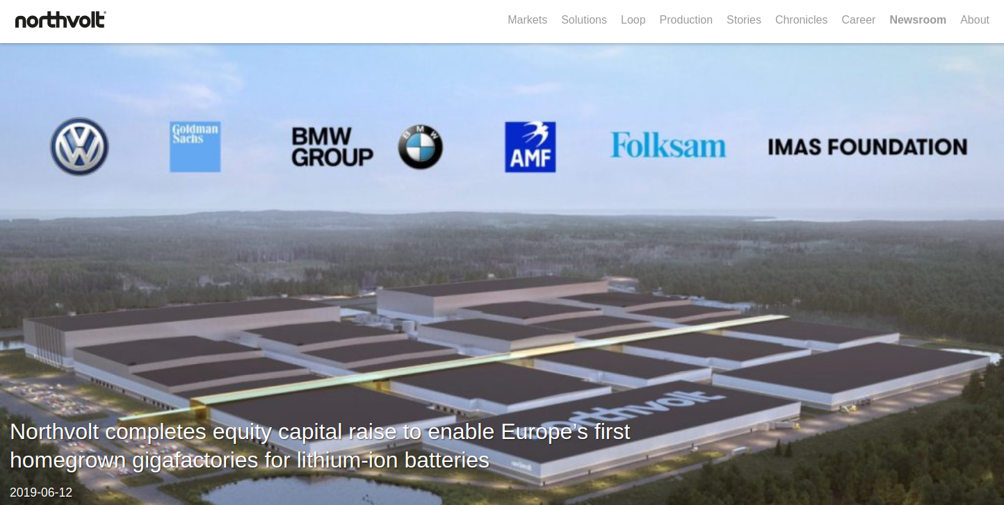 노스볼트는 창업 직후인 2017년에 스위스, 스웨덴의 세계적인 전기 장비 제조업체인 ABB로부터 1,000만 유로, 2018년에 독일의 지멘스로부터 1,000만 유로의 투자를 유치했으며 폭스바겐그룹 계열사이자 스웨덴의 대형트럭 생산업체인 스카니아도 1,000만 유로를 투자하기도 했습니다.