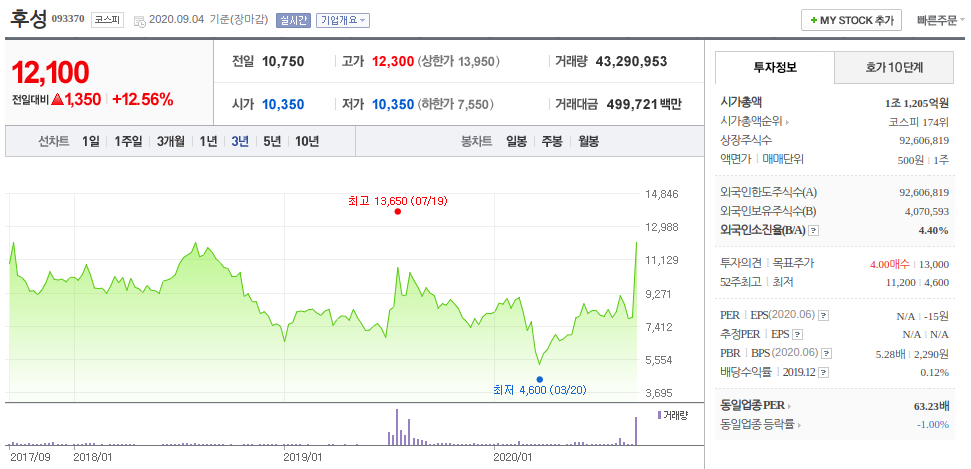 후성은 불소를 기반으로 한 기초 화합물을 전문적으로 제조, 판매하는 업체로 불화수소 국산화에 성공한 회사 중 하나입니다. 후성의 경우 2차 전지 소재도 생산 및 판매하고 있으며 최근 K-뉴딜 2차 전지 지수에 편입된 종목으로 하락장에서도 강한 상승을 보여주었습니다. 소부장 관련주뿐만아니라 그린뉴딜 관련주, 2차전지 관련주로 함께 묶이며 틈만나면 상승하는 모습을 보여주고 있습니다.