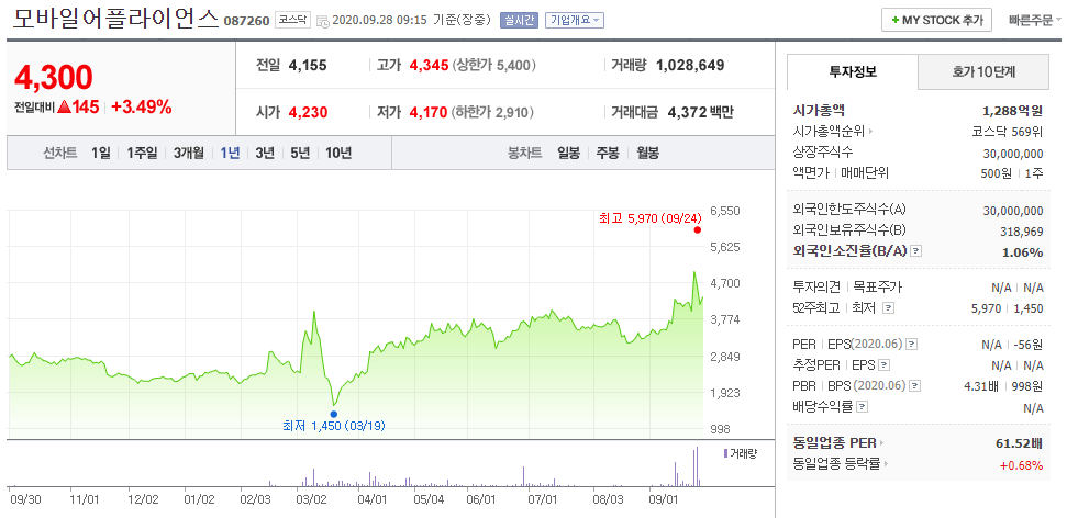 - 2019년 매출 1,322억 원, 영업이익 76억 원, 순이익 83억 원을 기록했으며 2020년 상반기 매출 460억 원, 영업이익 -61억 원, 순이익 -58억 원을 기록했습니다.