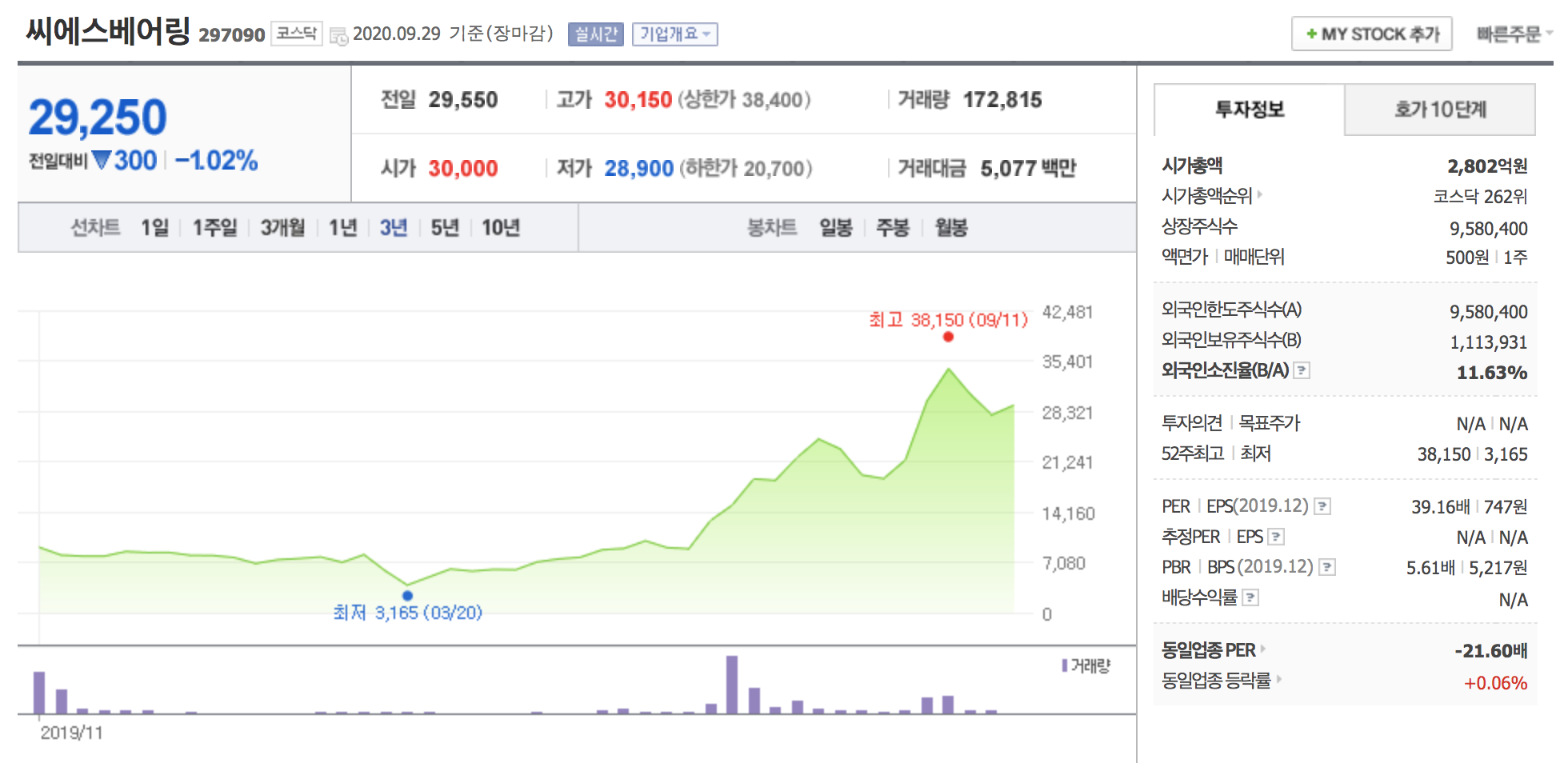 | 씨에스베어링 | 윈드타워용 베어링 생산, 씨에스윈드 계열사. | 3M : 105% / 6M : 471% (신규상장) |