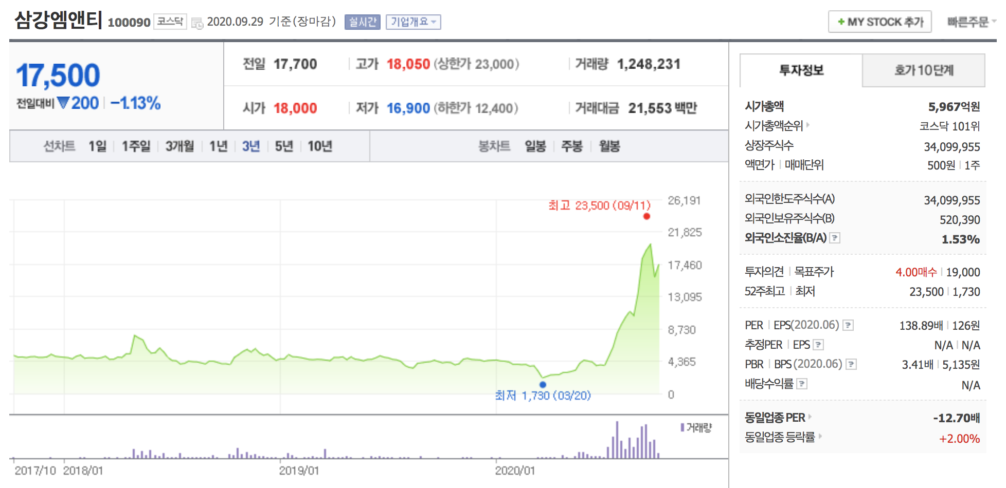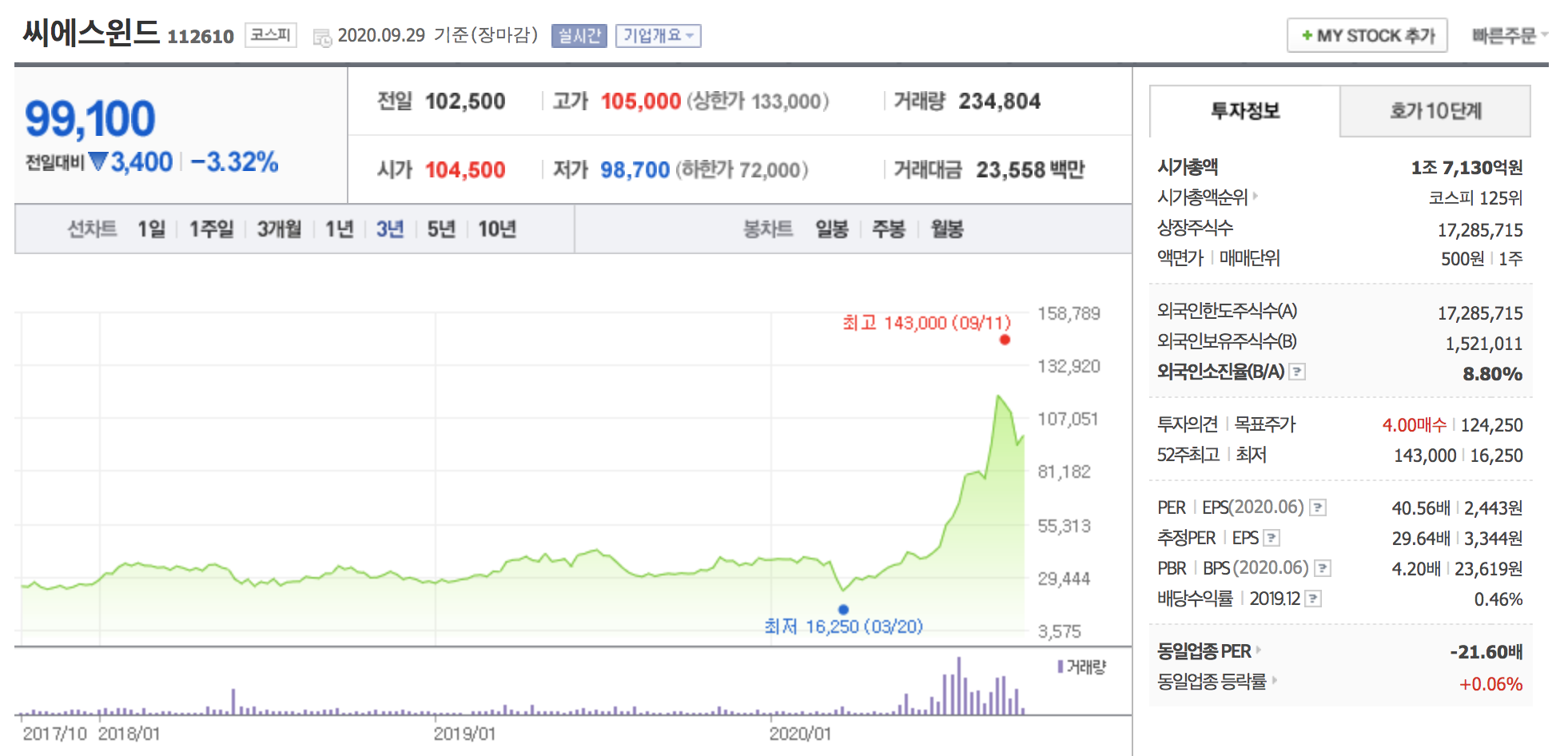 - 9월 29일 종가 기준 수익률 3M : 187% / 6M : 270% / 1Y : 97%