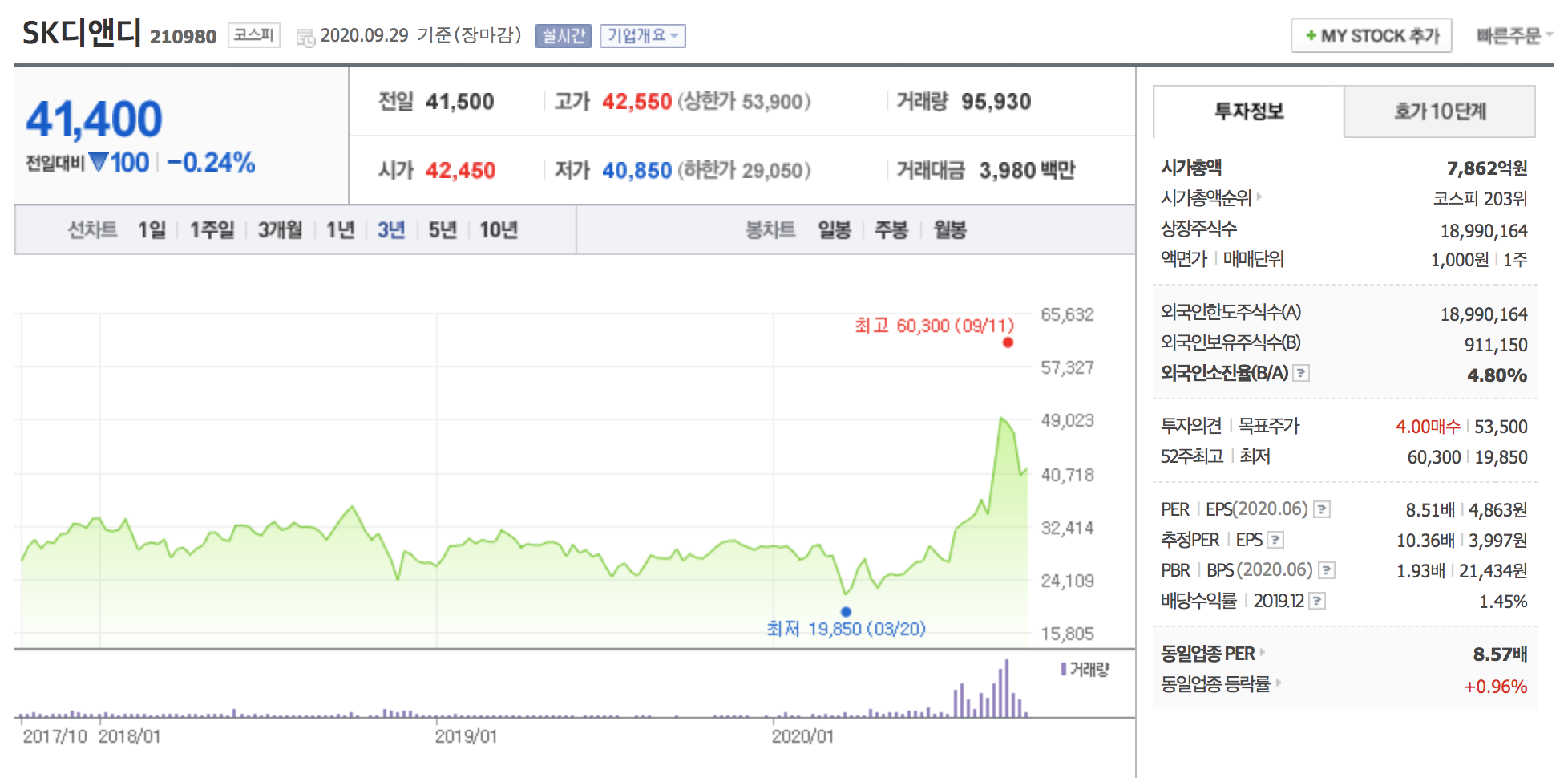 | SK디앤디 | 풍력 발전단지 건설. | 3M : 51% / 6M : 81% / 1Y : 53% |