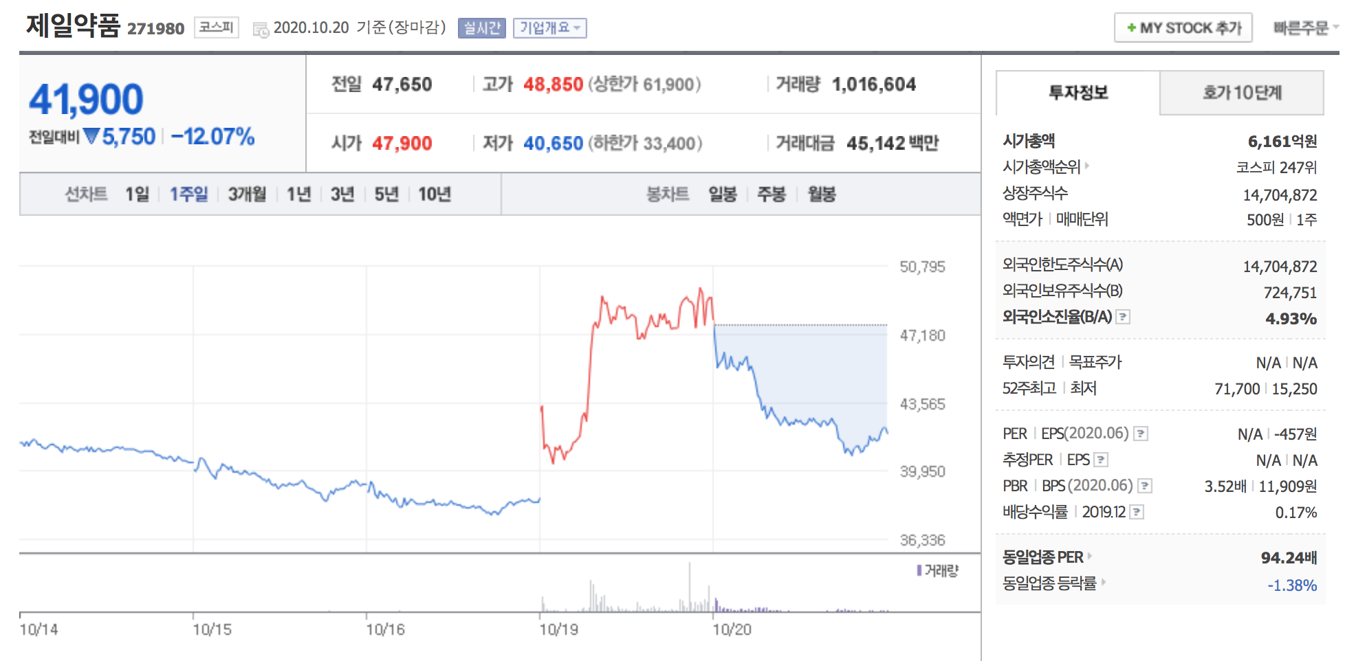 - 주가는 10월 19일 강한 상승을 보였다가 대장주 흐름이 바뀌면서 10월 20일 강한 낙폭을 보였습니다.