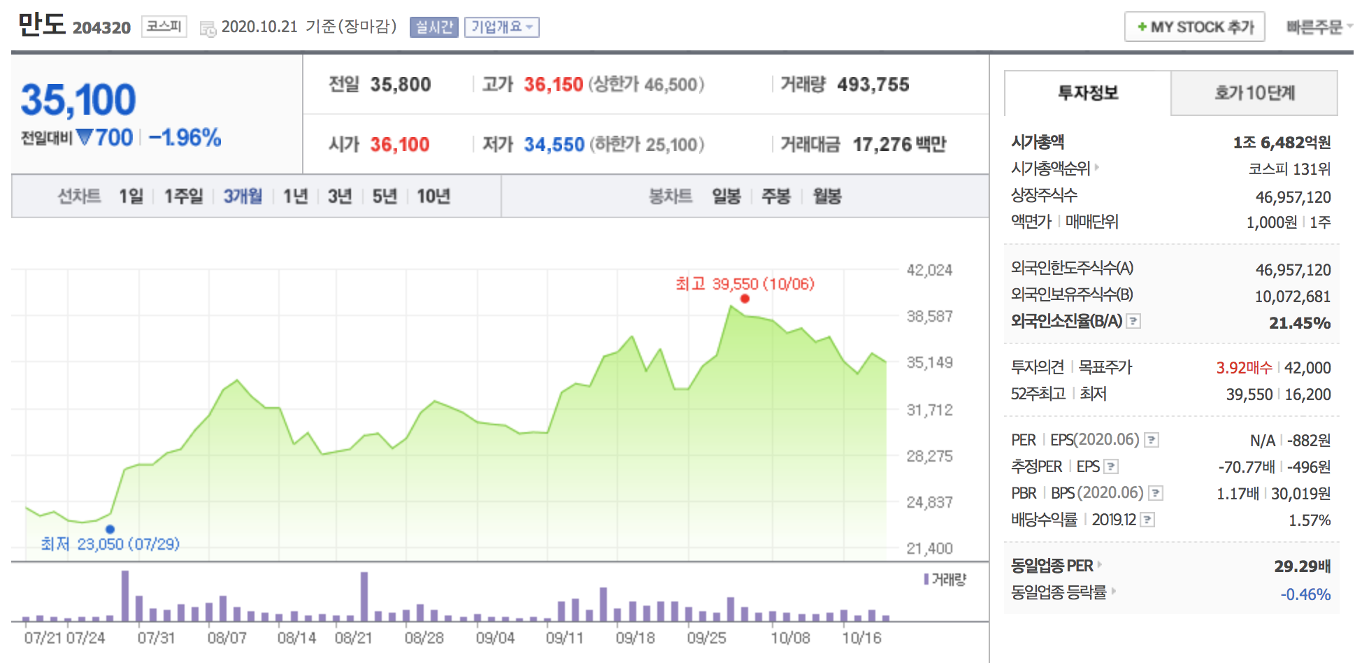 - 주가는 다른 자율주행 관련주와 마찬가지로 테슬라 배터리데이 전후로 큰 상승후 하락 중입니다.
