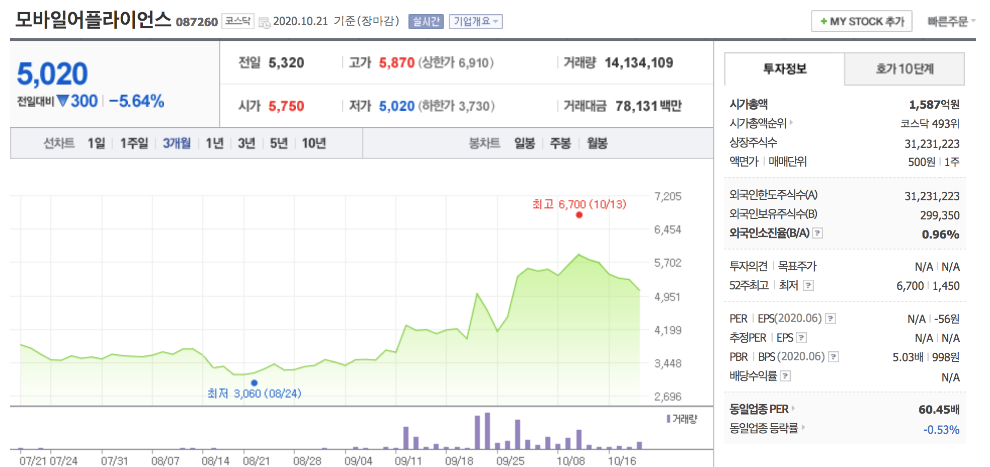 - 2020년 상반기 매출 64억 원, 영업이익 1억 원, 순이익 6억 원을 기록.
