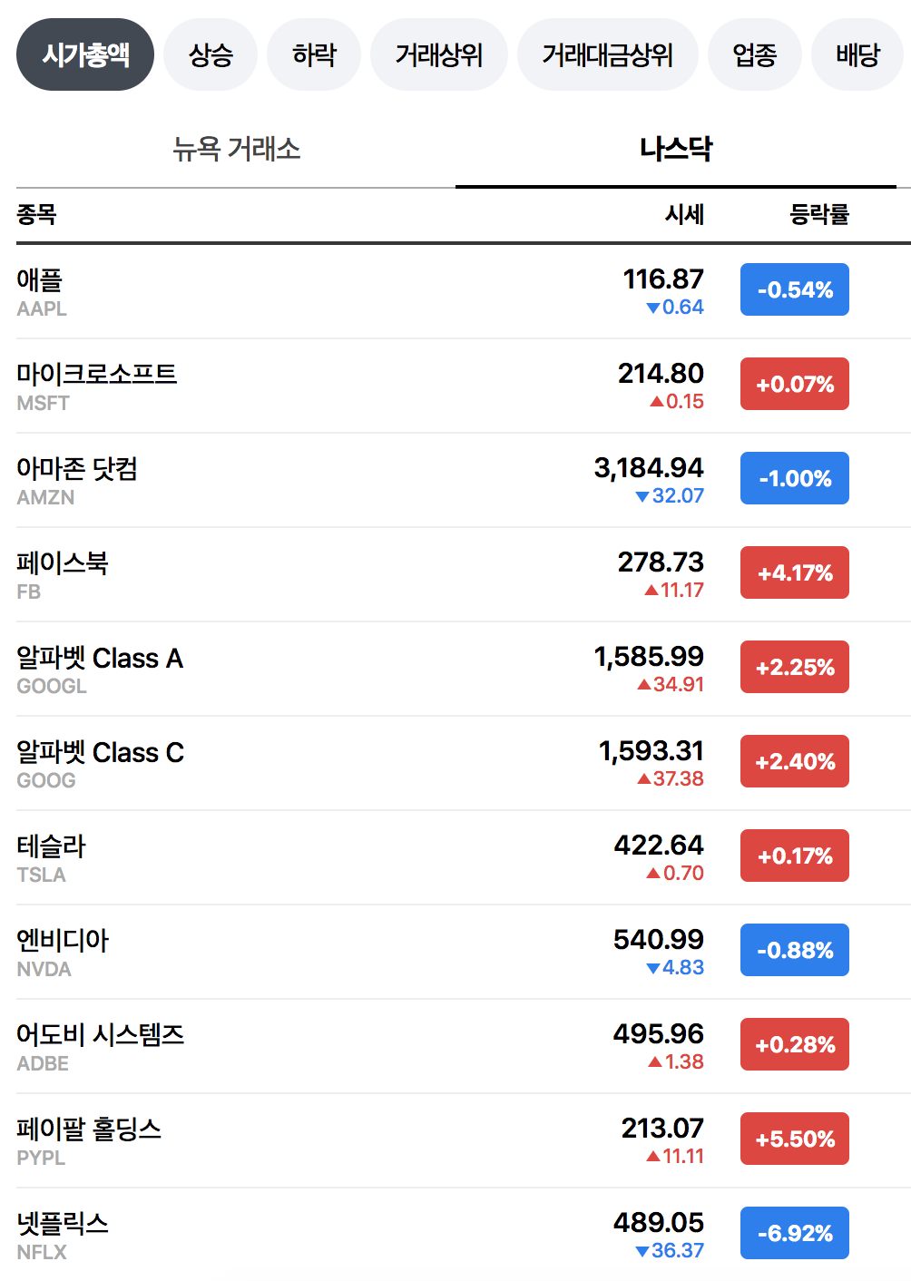 매일매일 미 증시 빅테크 기업 주가 등 장마감후 점검하기