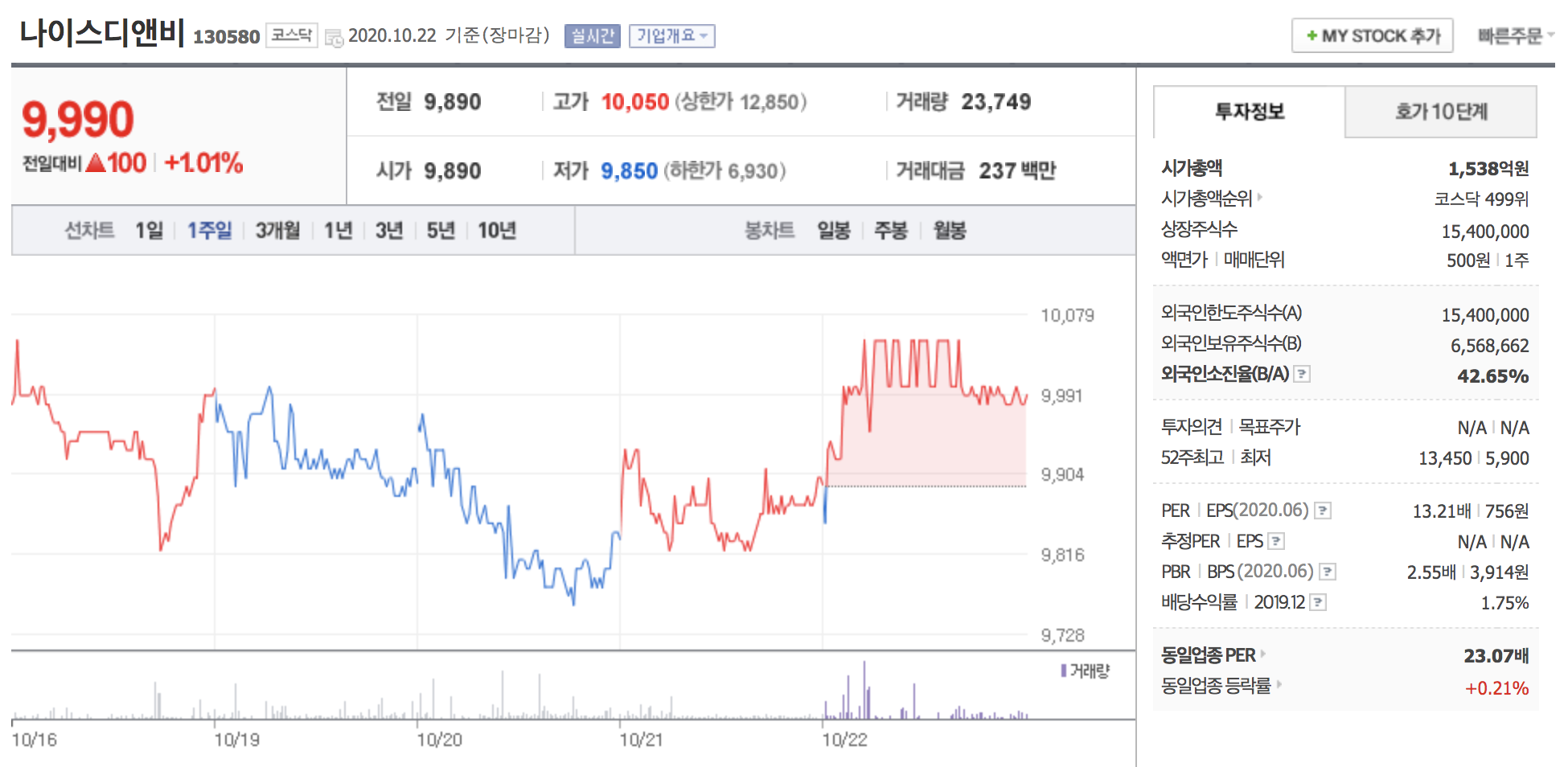 앞서 언급드린 종목 주가 역시 테마가 형성되지 않았기에 변동이 없는 모습입니다.