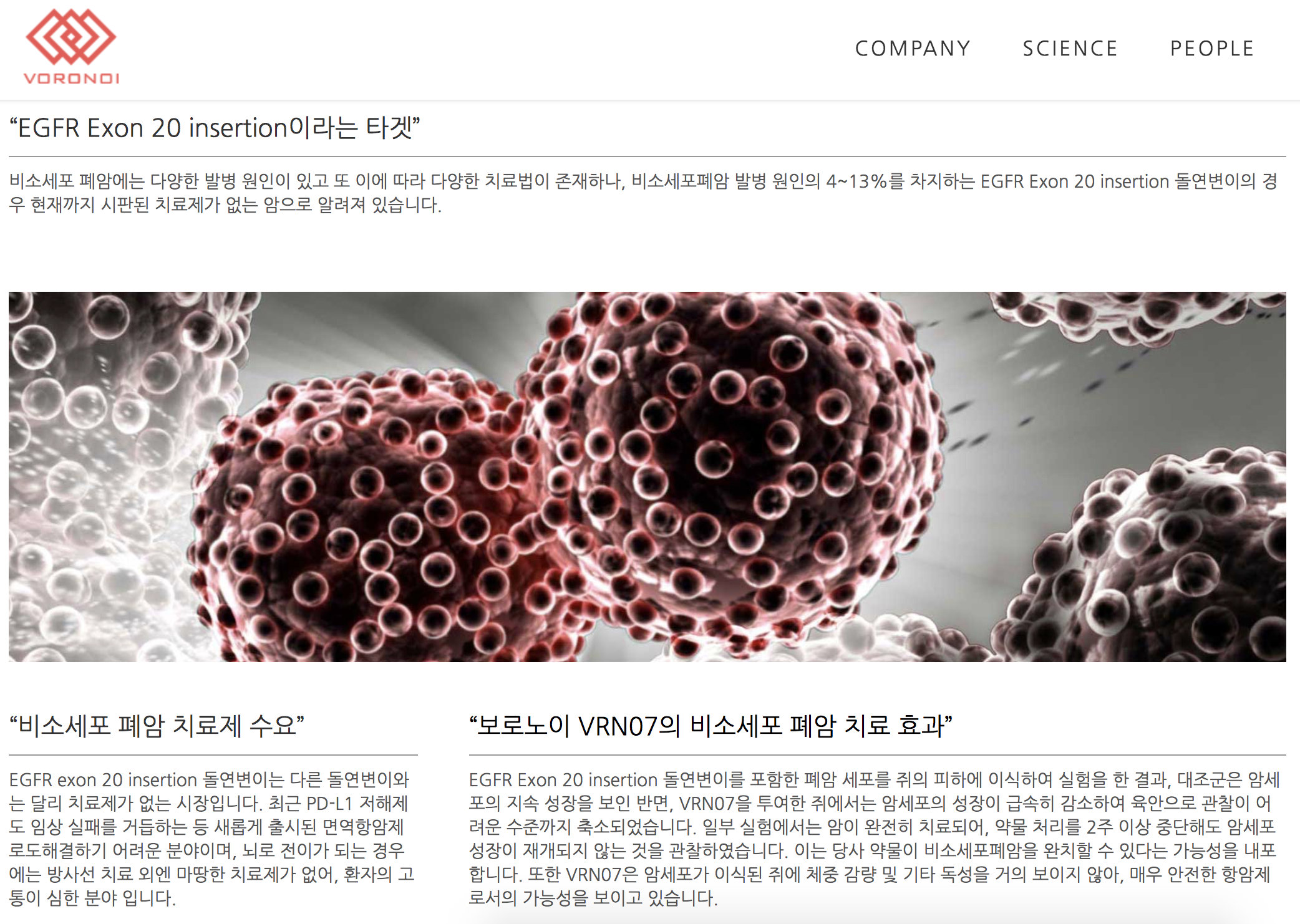 현재 Exon 20 삽입 돌연변이로 발생하는 비소세포폐암만을 타겟으로 하는 치료제가 없는 상황 속에서 보로노이가 기술 수출한 폐암 치료제 후보물질은 발암 원인인 Exon 20 삽입 돌연변이에만 작용해 치료효과가 우수할 것으로 예상되고 있습니다.