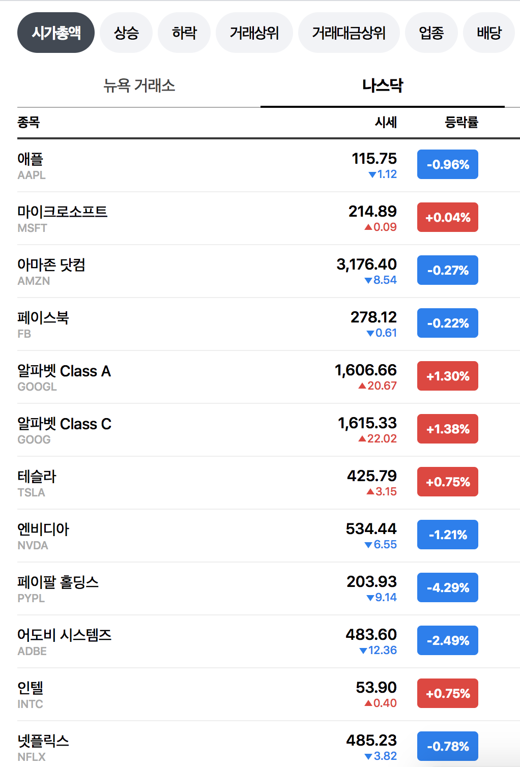 매일매일 미 증시 빅테크 기업 주가 등 장마감후 점검하기