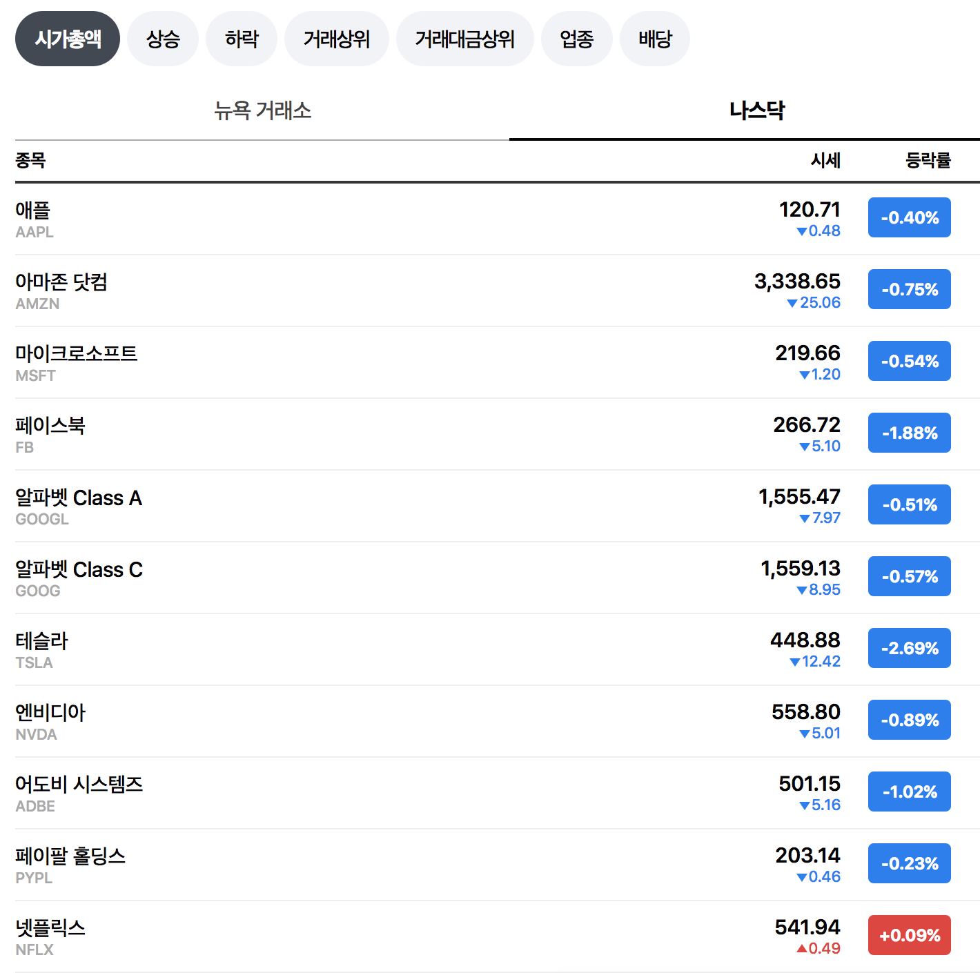 매일매일 미 증시 빅테크 기업 주가 등 장마감 후 점검하기
