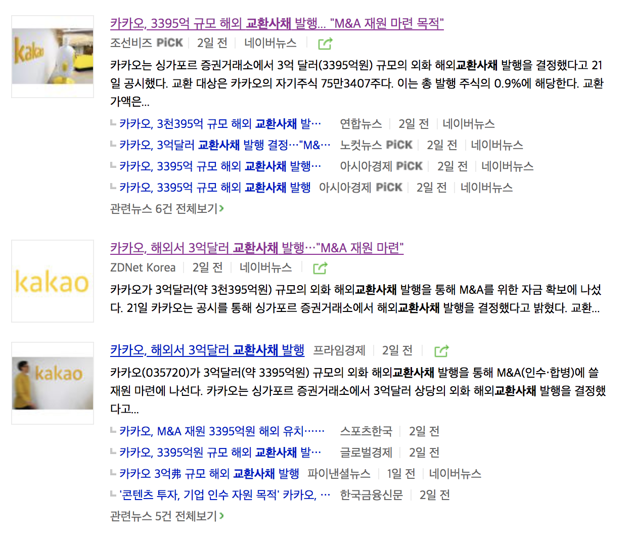 카카오의 교환사채 공시 들여다보기