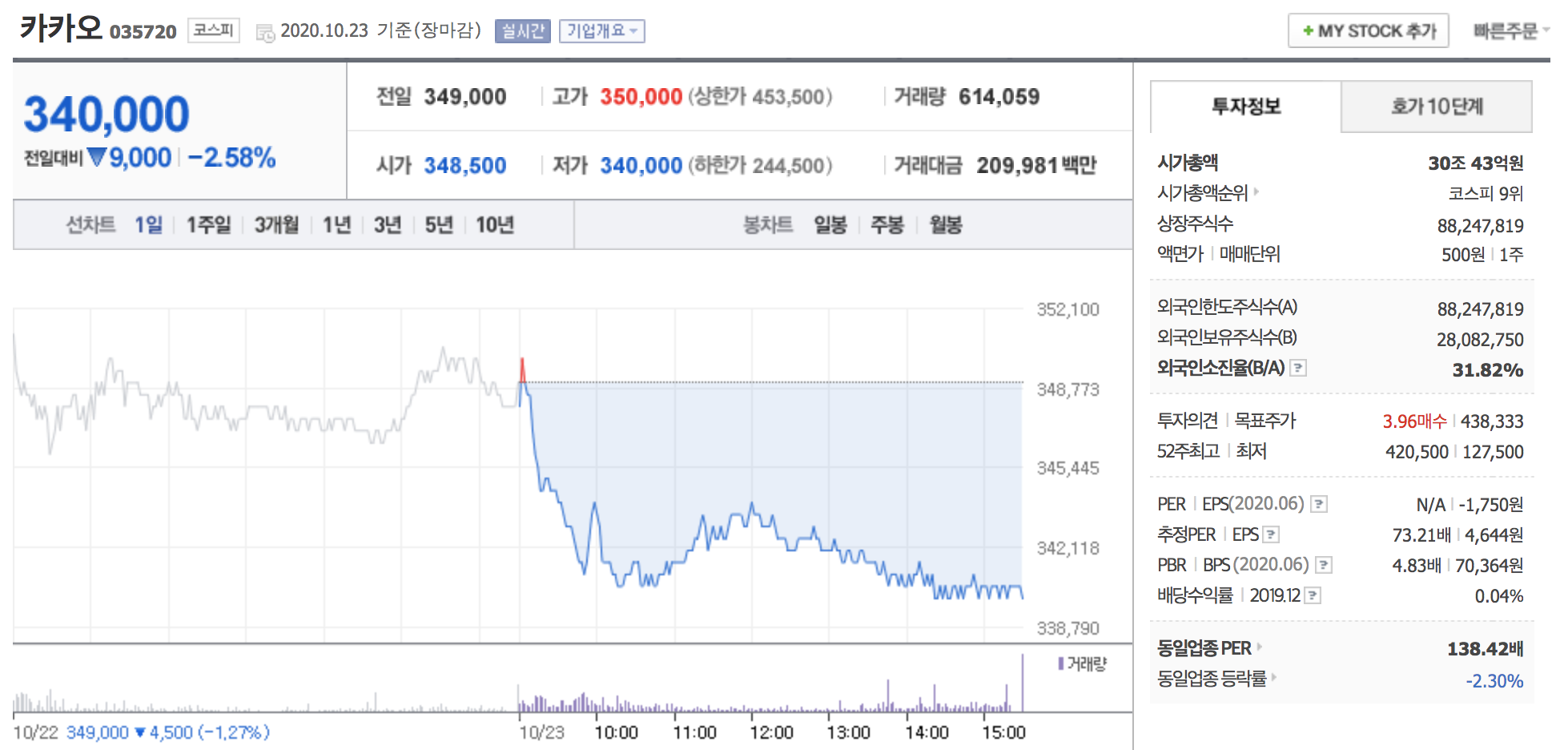 개인적으로는 호재라고 생각하는데, 주가는 하락하는 모습을 보였습니다. 앞으로 카카오가 어떤 행보를 보이느냐에 따라 이번 교환사채 발행이 잘한 일인지, 못한 일인지 평가될 것입니다.