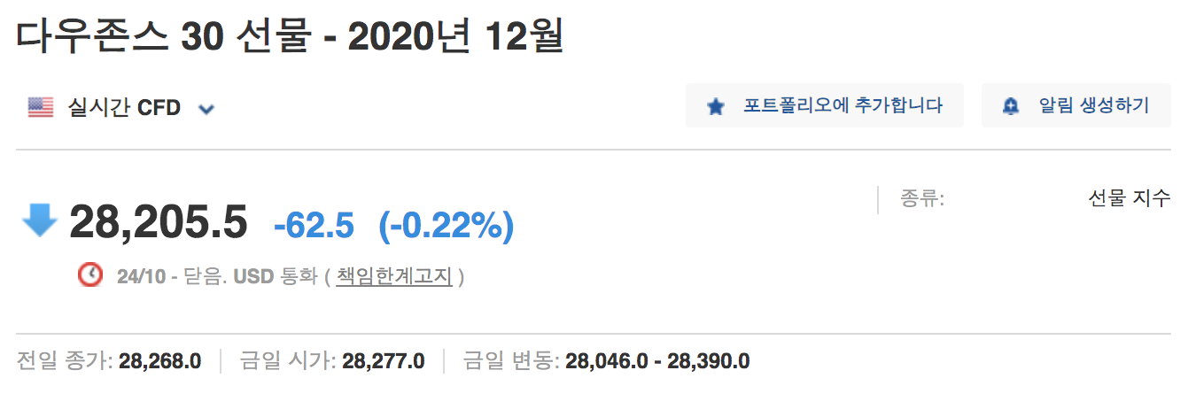 | 실시간 나스닥 선물지수 무료로 확인하는법 [인베스팅 닷컴] (9) | 2020.10.09 |