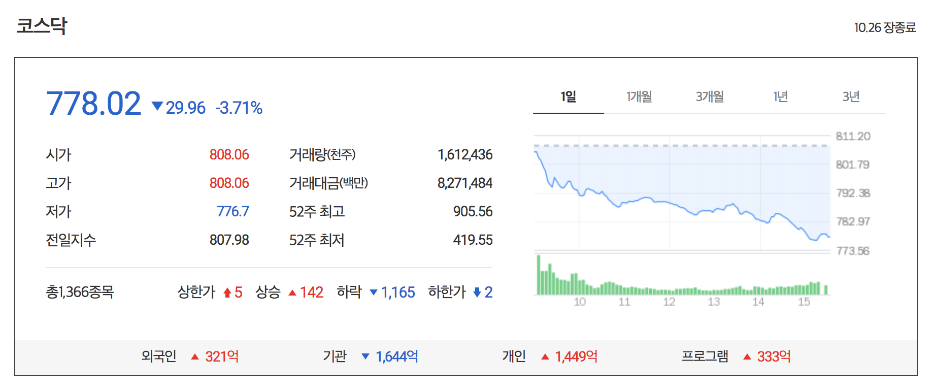 오늘 코스닥이 -3.71%를 기록하며 크게 내려 앉았습니다. 물론 기관이 오늘도 팔았고, 이외에도 여러가지 이유가 있었겠지만 대주주 3억 요건도 어느정도 영향이 있었을 것이라 생각됩니다.