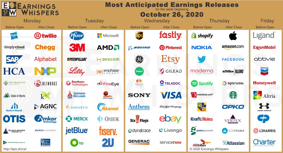 27일 마이크로소프트와 3M을 시작으로 28일 보잉, GE, VISA 29일 애플, 아마존, 페이스북, 알파벳(구글), 트위터 30일 엑슨모빌, 알트리아 등이 대기하고 있습니다.