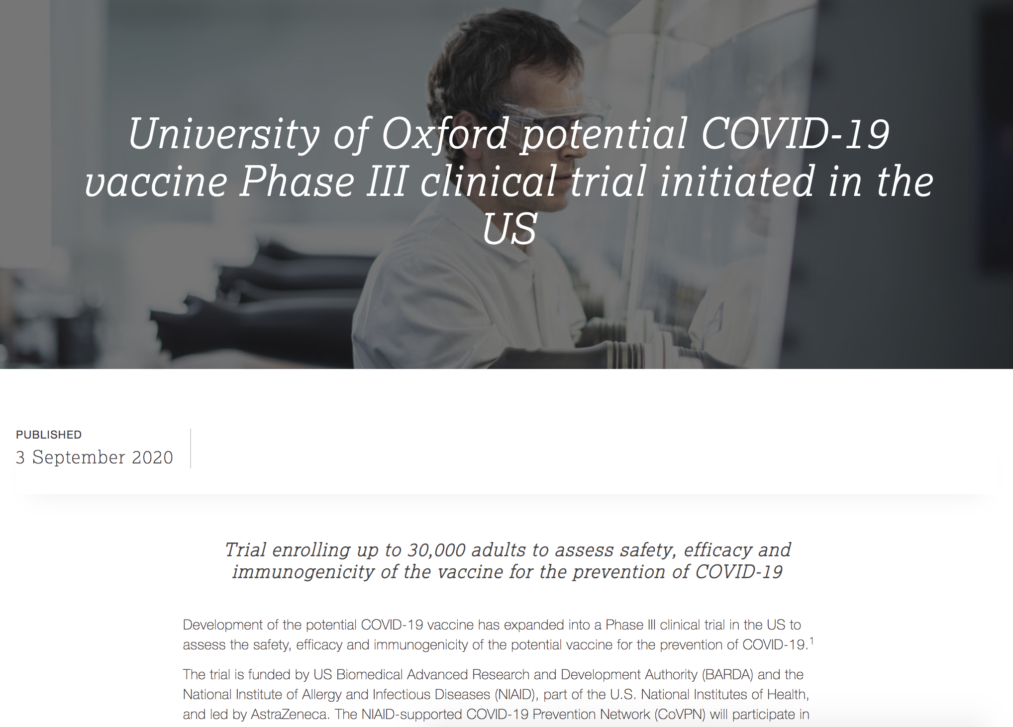 현재 아스트라제네카는 영국 옥스퍼드대와 손잡고 코로나19 백신 후보물질(AZD1222)에 대한 임상시험을 진행 중이며 긍정적인 데이터를 확보했습니다.