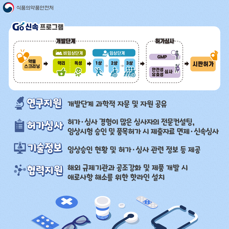 위에서 간단히 언급했던 식약처 고(Go) 신속 프로그램에 대해서 간단히 말씀드리겠습니다.