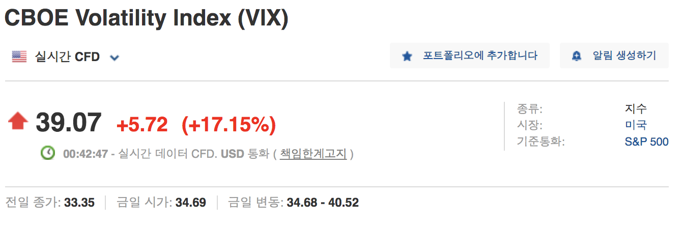 - VIX(변동성)지수 어제에 이어 급등하고 있습니다. 6월 이후 최고점.