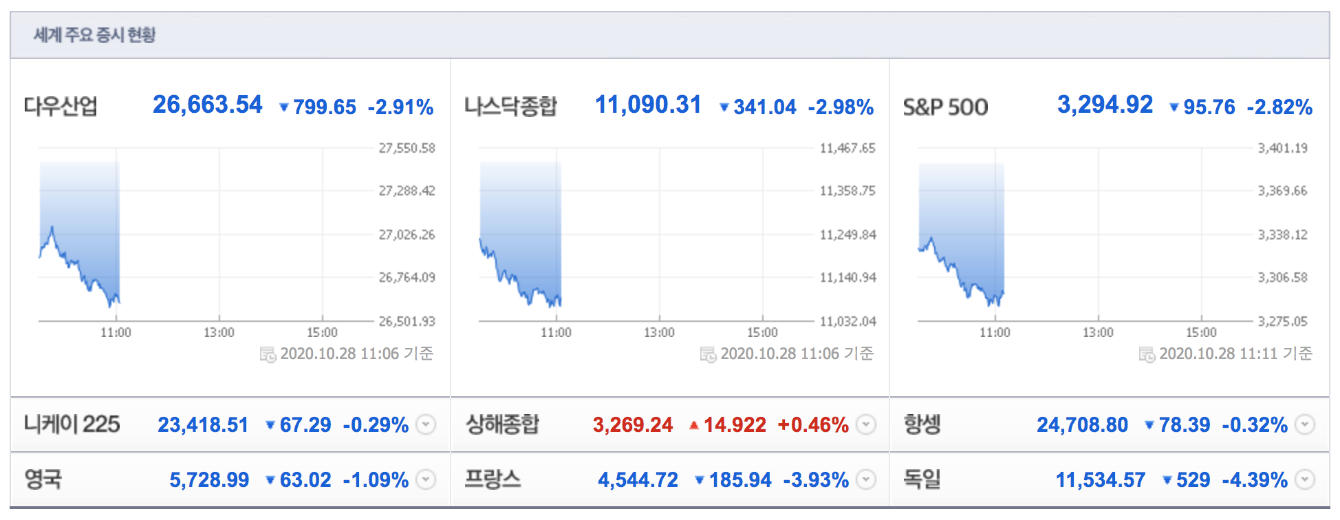 - 유럽발 코로나 19로 인한 재봉쇄, 나스닥 빅테크 청문회 등이 급락의 이유로 보입니다.