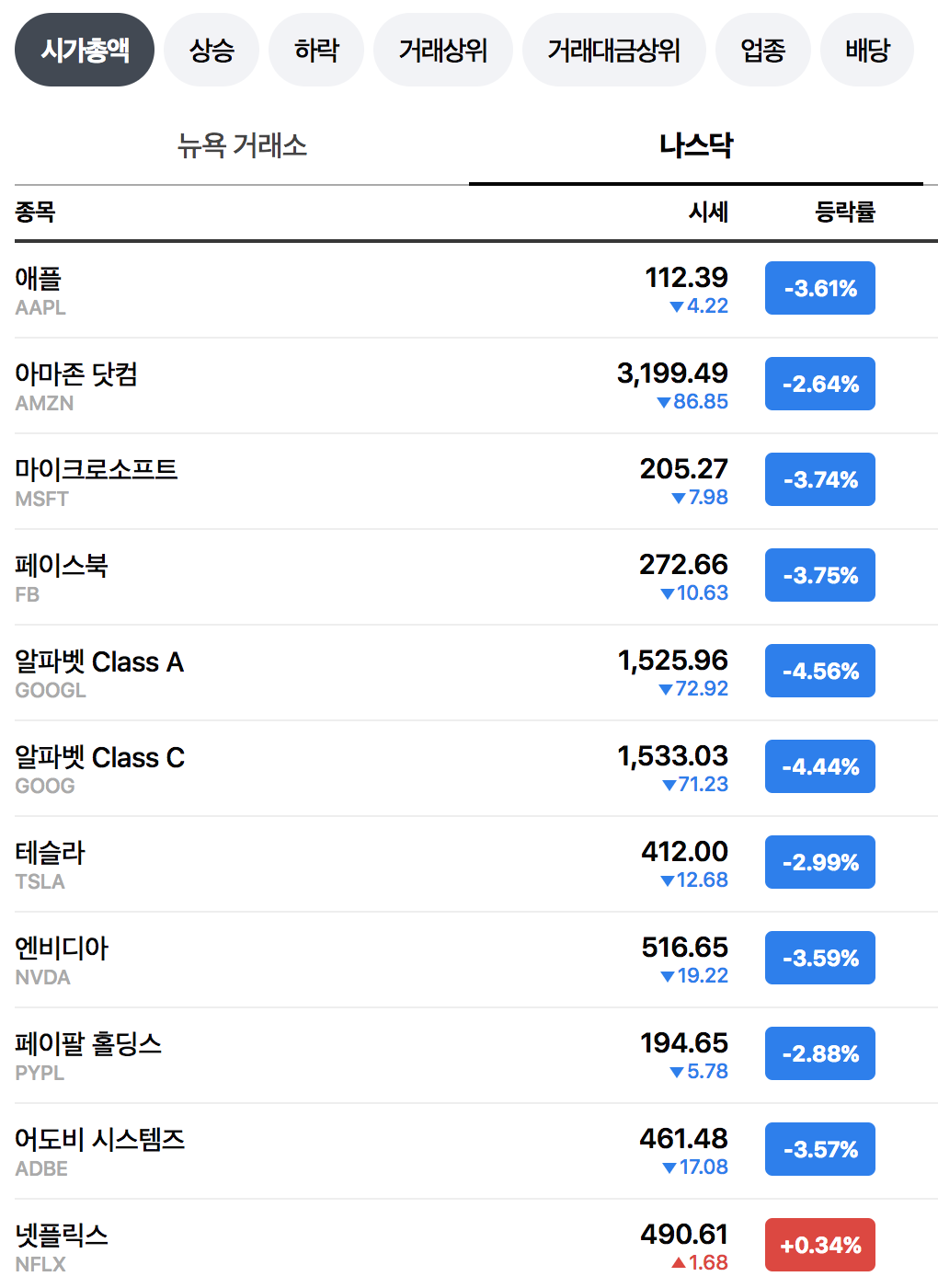 - 어제 홀로 상승한 나스닥이 푹 꺼지고 있습니다.