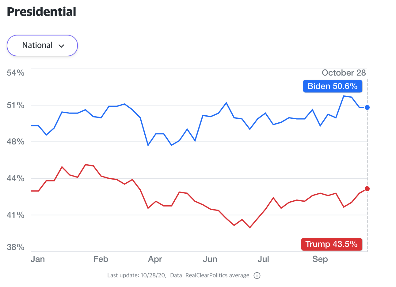 - 트럼프 바이든 지지율 격차가 조금씩 줄어드는 중 현재 7.1%(어제는 7.4%)