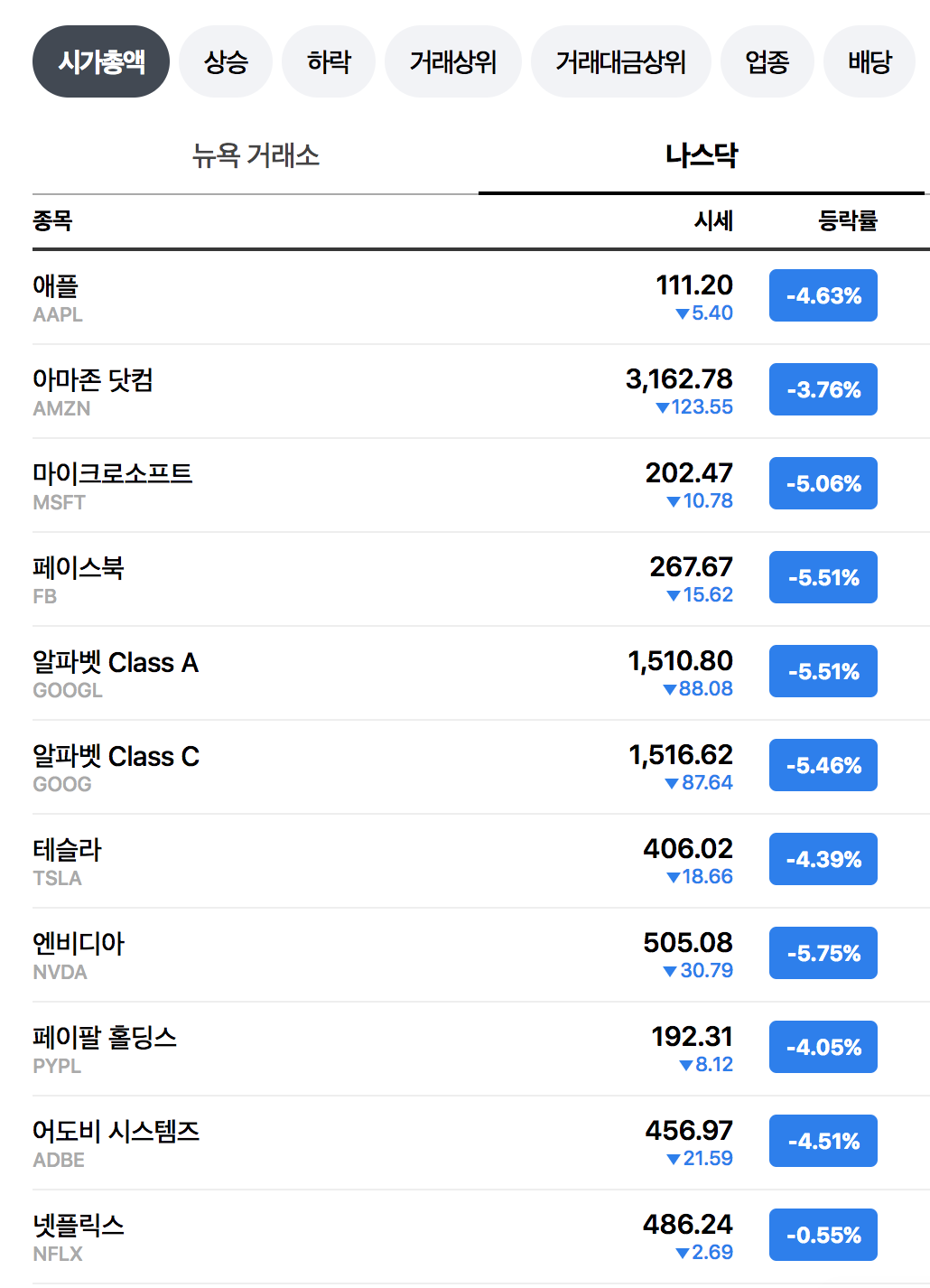 매일매일 미 증시 빅테크 기업 주가 등 장마감후 점검하기