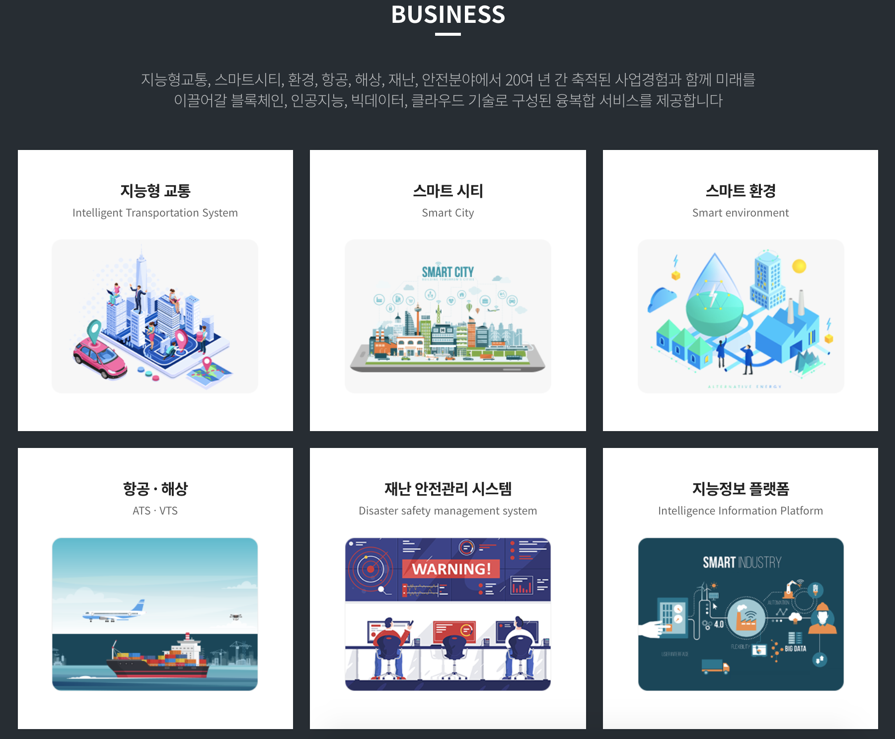 빅데이터 기반 의사결정 시스템, IoT 미세먼지 대응 시스템, 블록체인 기반 중고물품 플랫폼 등 ICT 기술 기반 사업들에 대한 초기 시장 진입에 성공해 국내 주요 기업, 공공기관 들과 파트너쉽을 맺고 있습니다.
