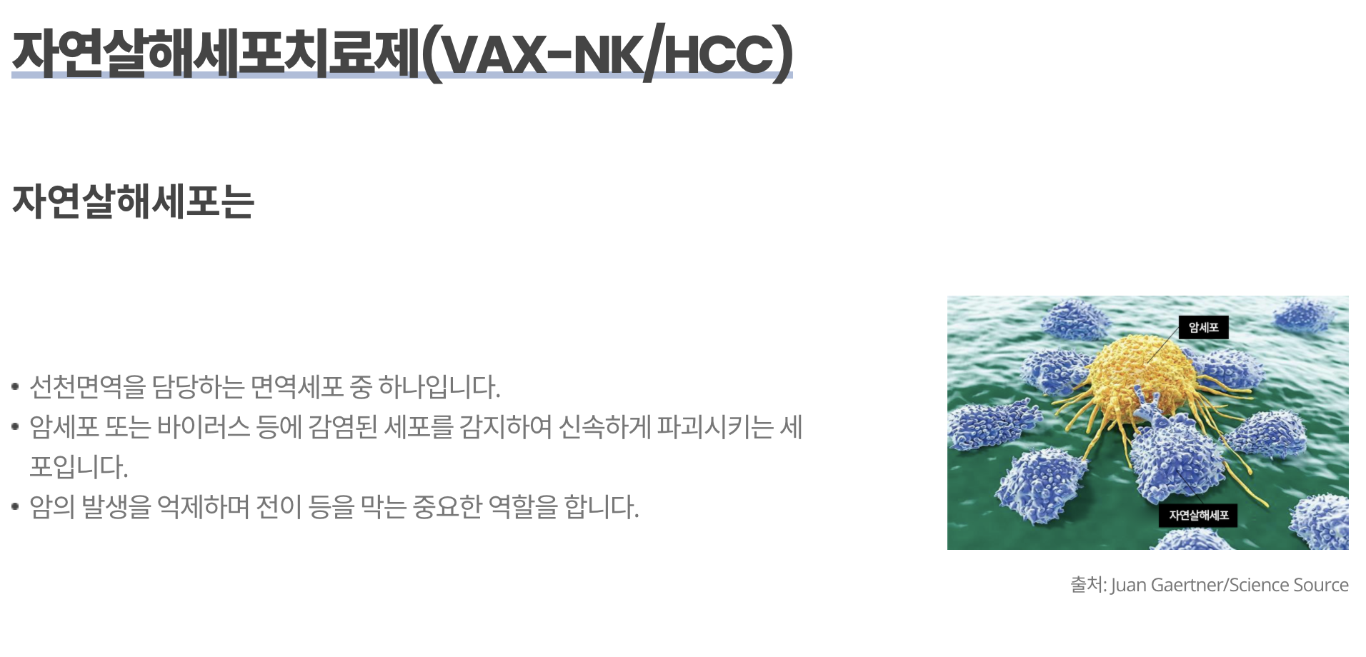 현재 간암 치료제 'VAX-NK'와 관련해 임상 2상을 진행하고 있는데 첫 번째 환자가 몸에서 암세포가 완전히 사라지는 완전관해(CR) 결과를 보인 것으로 알려졌습니다.