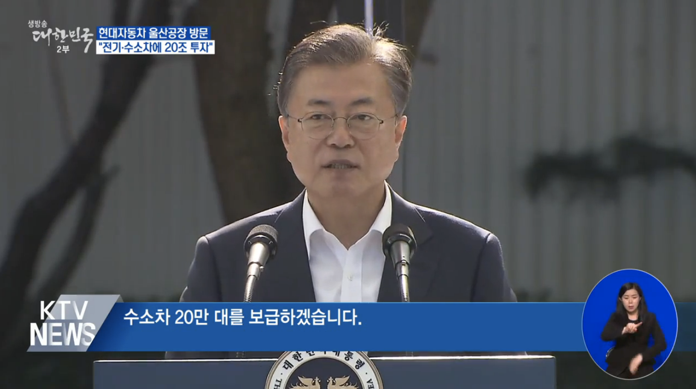 또한 문재인 대통령은 2025년까지 전기차, 수소차 등 그린 모빌리티에 20조 원 이상 투자할 계획이라고 밝혔으며 2022년을 ‘미래차 대중화의 원년’으로 삼고 2025년까지 전기차 113만 대, 수소차 20만 대를 보급할 것이며 내년부터 공공기관의 신차 구매와 공공기관장 차량은 모두 전기차와 수소차로 전환한다고 말했습니다.