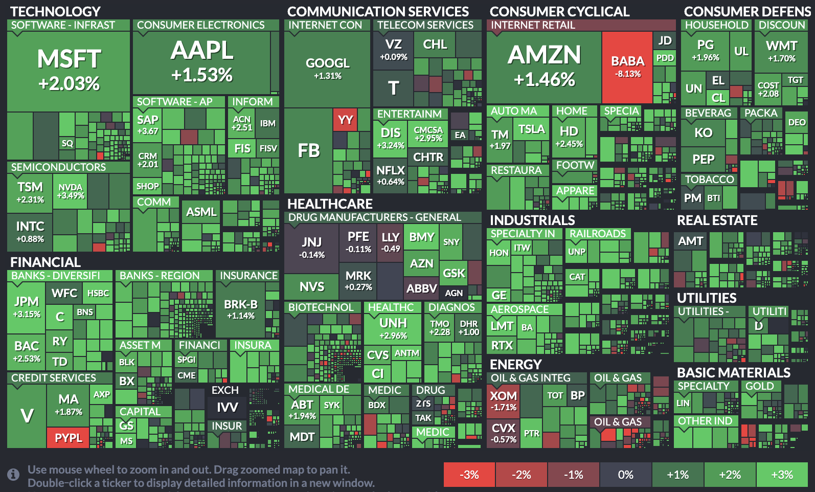 - S&P 500은 +1.78%를 기록하며 3,369.20 포인트로 장마감.