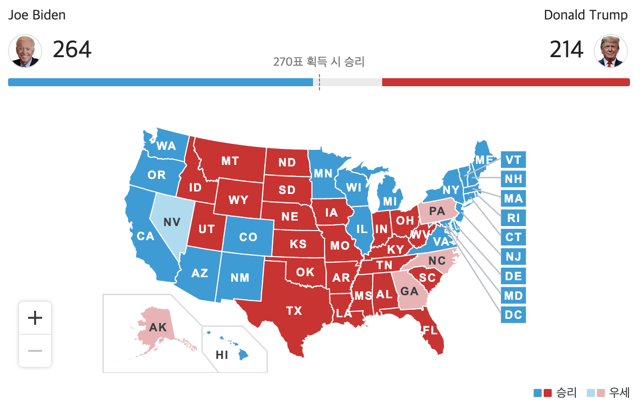 - 바이든 우세에서 트럼프 우세 그리고 마지막에는 바이든 우세로 가면서 재밌는 상황이 벌어지고 있습니다.