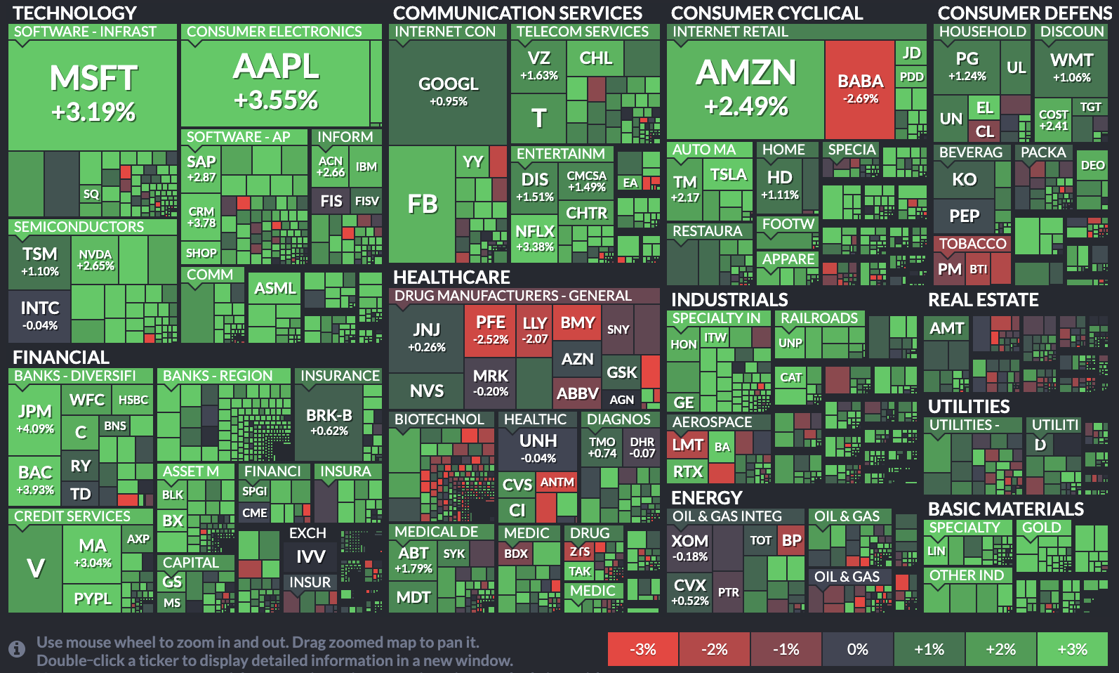 - S&P 500은 +1.95%를 기록하며 3,510.45 포인트로 장마감.