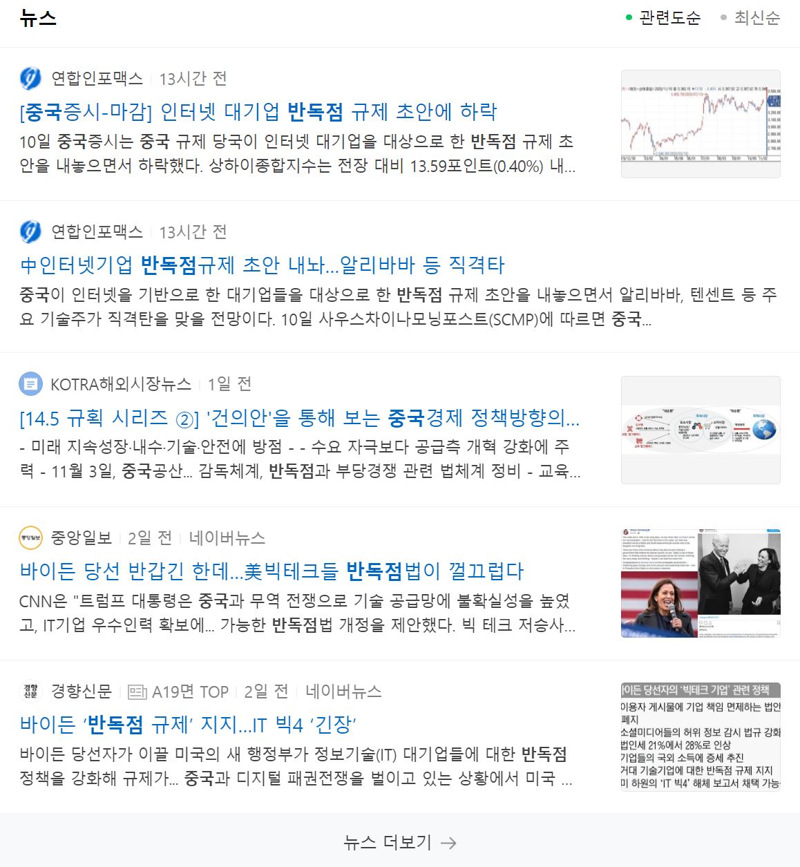 - 중국이 반독점 규제 초한을 내면서 글로벌 IT기업들이 흔들렸습니다.