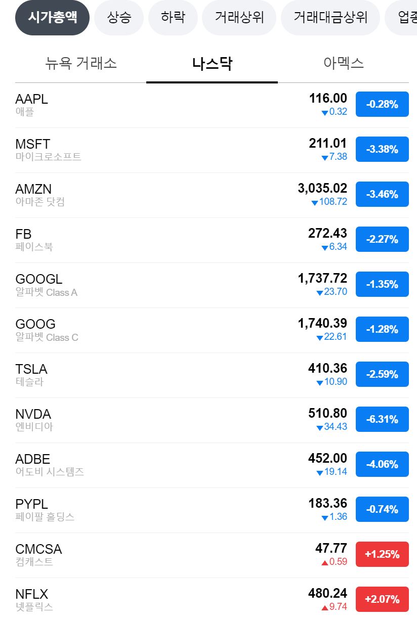 - 아마존 주가 : -3.46%를 기록하며 3,035.02 달러로 장마감.