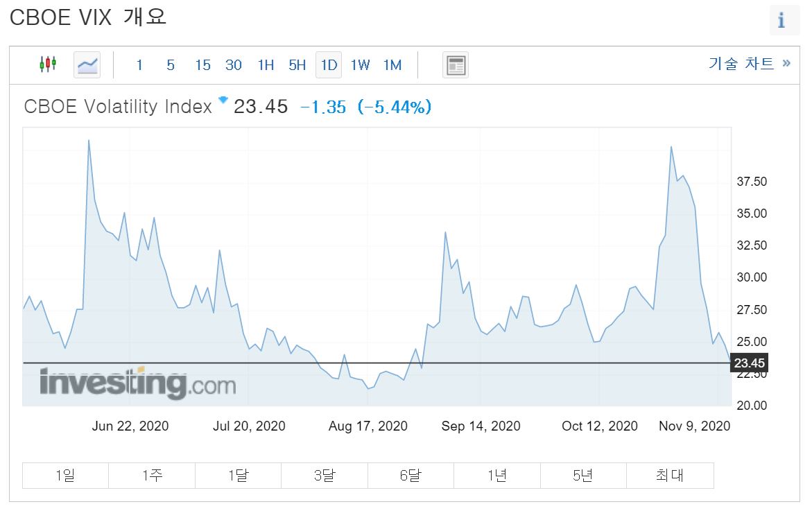 - VIX(변동성)지수 5.44% 하락하며 안정을 찾아가고 있는 모습입니다.