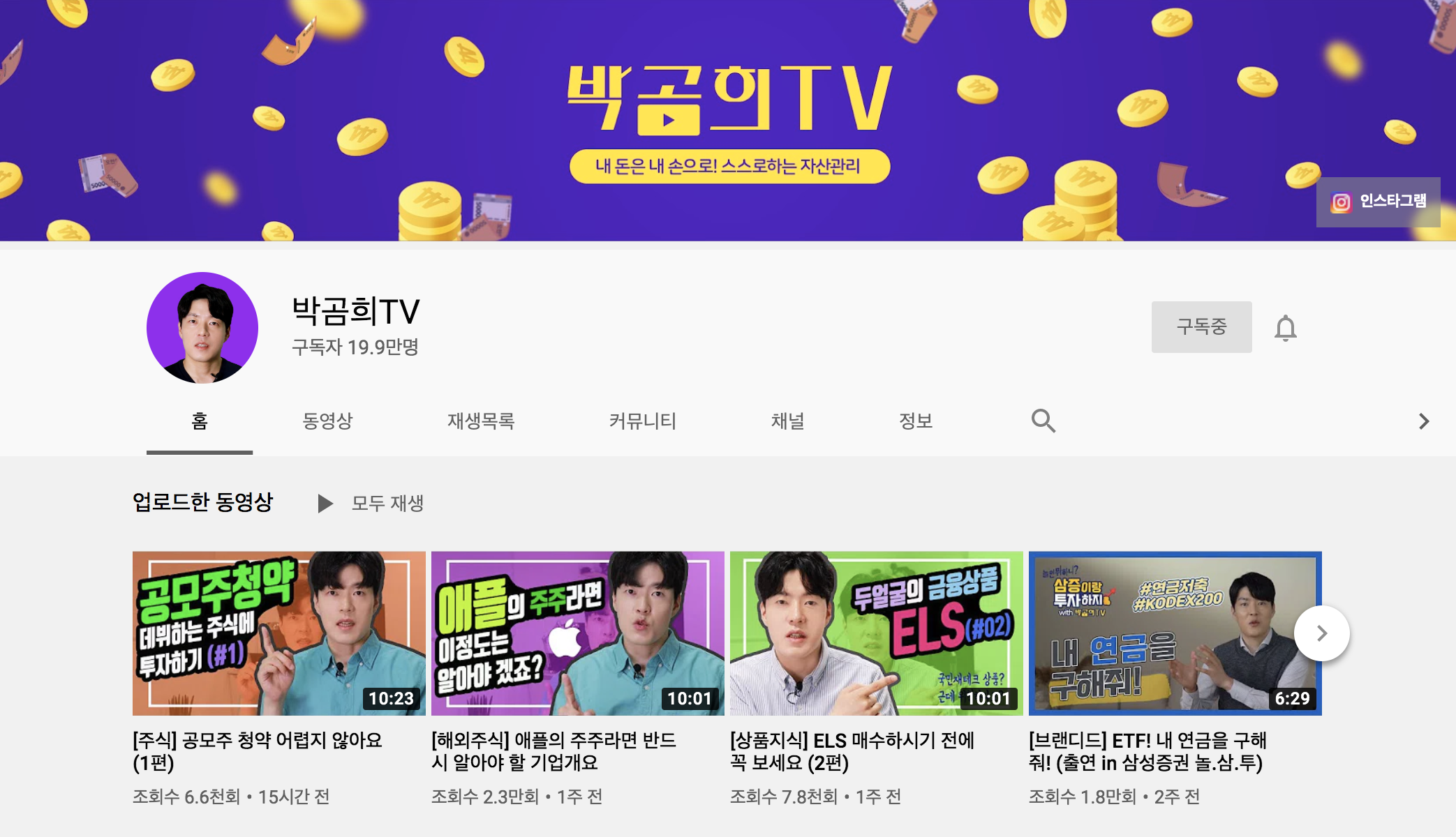 내가 주식 초보다? 무조건 박곰희티비! / 구독자 약 19.9만명 (20.06.10)