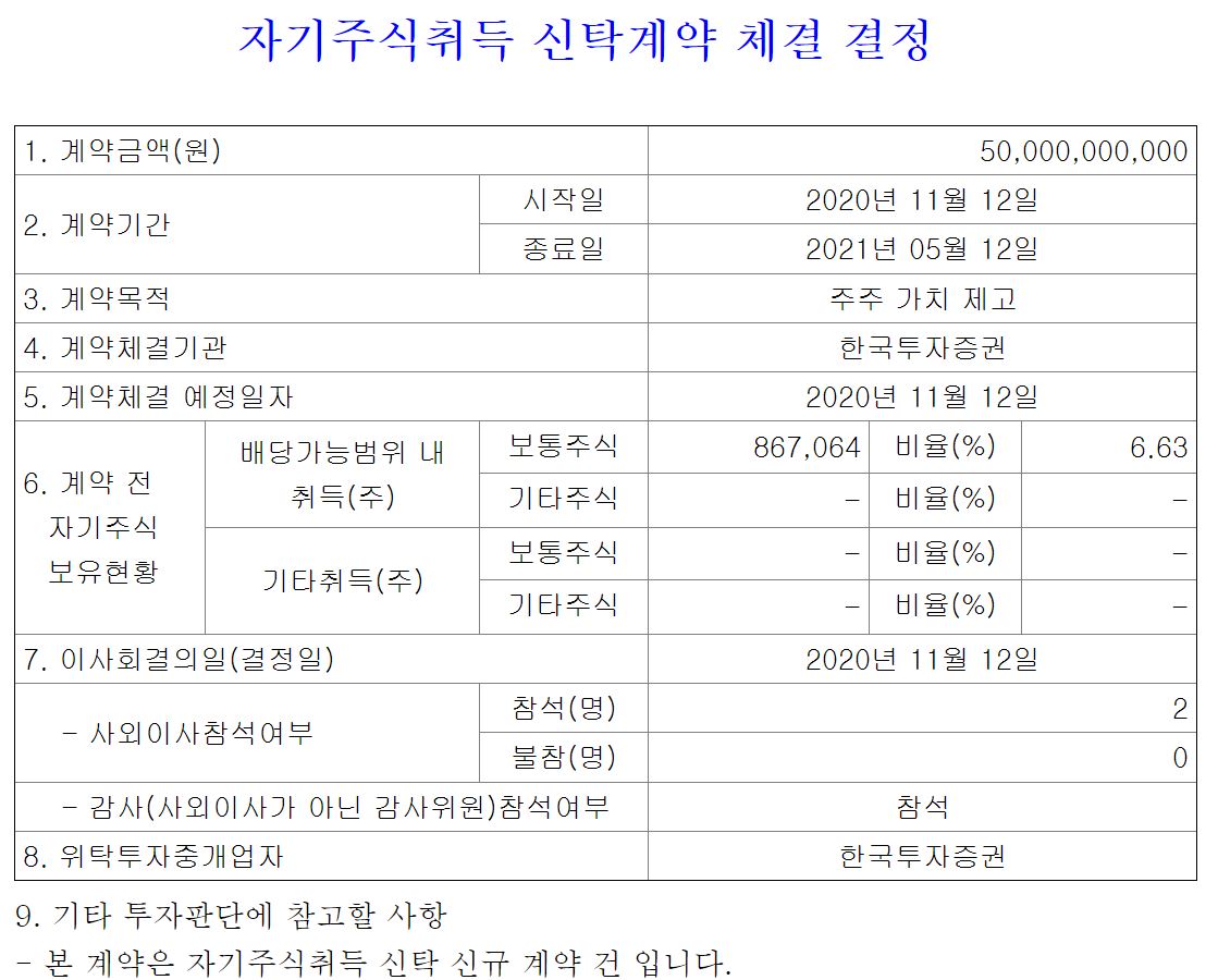 펄어비스는 실적 발표와 함께 자사주 매입을 알렸습니다. 500억 원 규모이며 11월 12일부터 5월 12일까지 매수를 진행할 예정입니다.