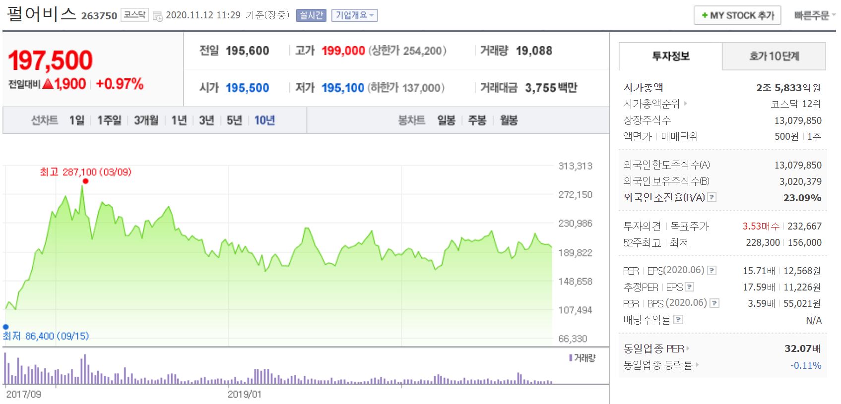 펄어비스 주가는 코로나 19 전과 후에 변함이 없습니다. 17~22만 원 박스권을 유지하고 있습니다.