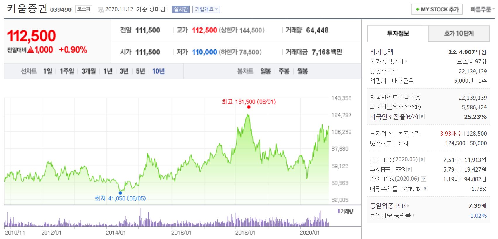 키움증권 주가는 코로나 19 이후 $40 이벤트 등 공격적인 마케팅으로 신규계좌를 끌어모았고 그 결과 2분기, 3분기 차례로 역대 최대 실적을 갱신하면서 주가도 전고점을 향해 달려 나가고 있습니다.