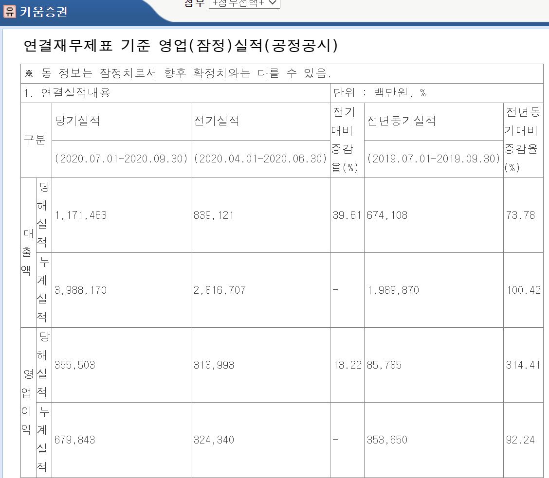 키움증권이 3분기 잠정 실적을 공시했습니다. 경이로운 실적을 내놓았습니다.