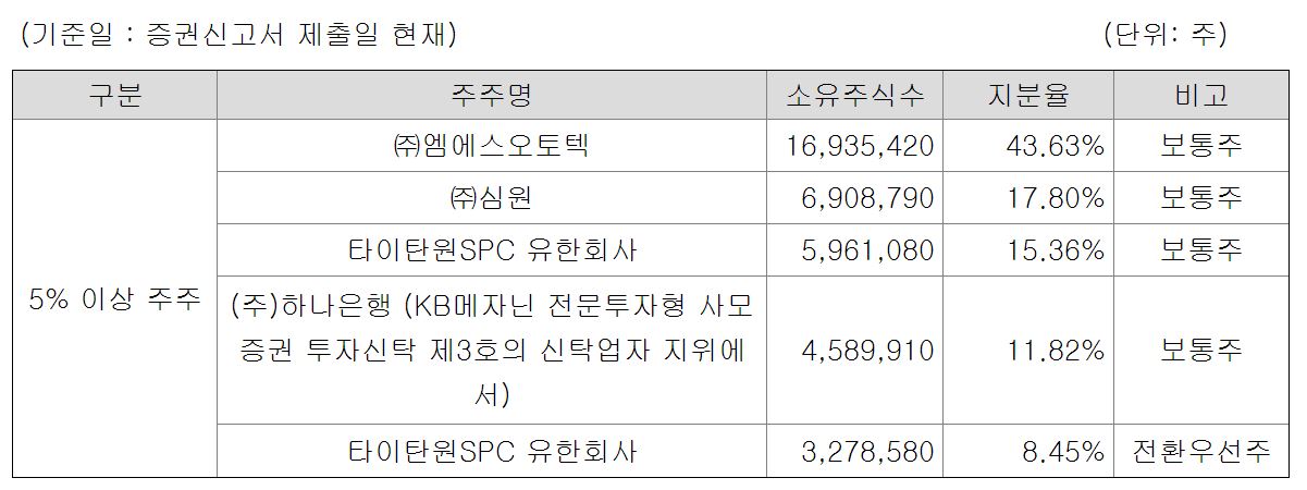 인상 깊은 점은 최대주주인 MS오토텍, 심원은 기존 6개월 락업에서 추가로 6개월 연장하며 1년간 주식을 팔지 않기로 결정했으며, 기존 투자자(구주주)들도 6개월간 물량을 내놓지 않기로 결정했습니다.