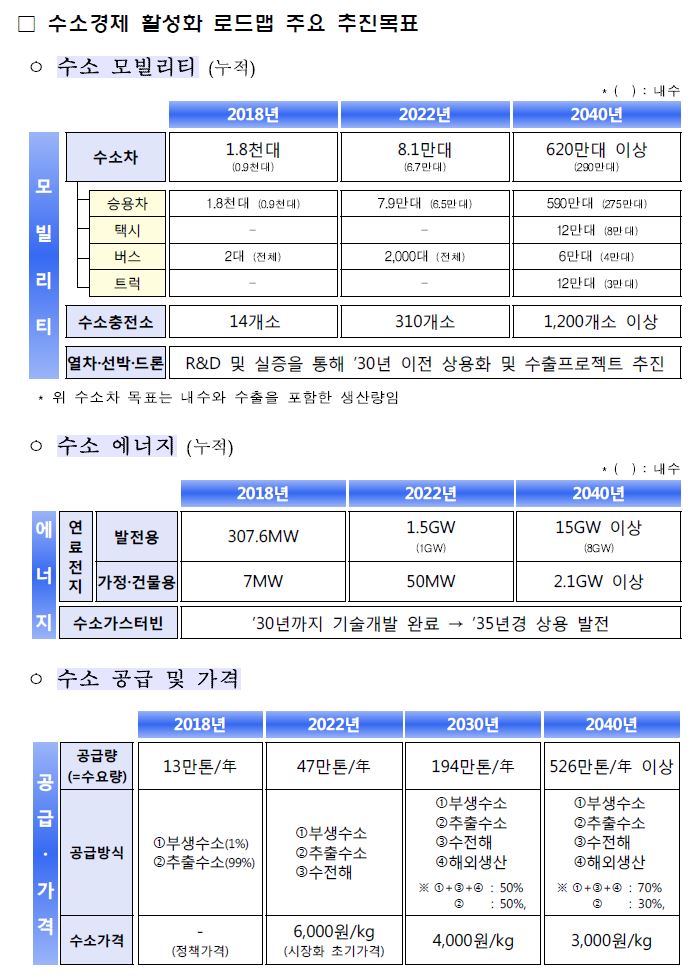 또한 수소 공급량을 2018년 13만톤에서 2022년 47만 톤, 2030년 194만 톤을 거쳐, 2040년에는 526만톤까지 확대할 예정입니다.